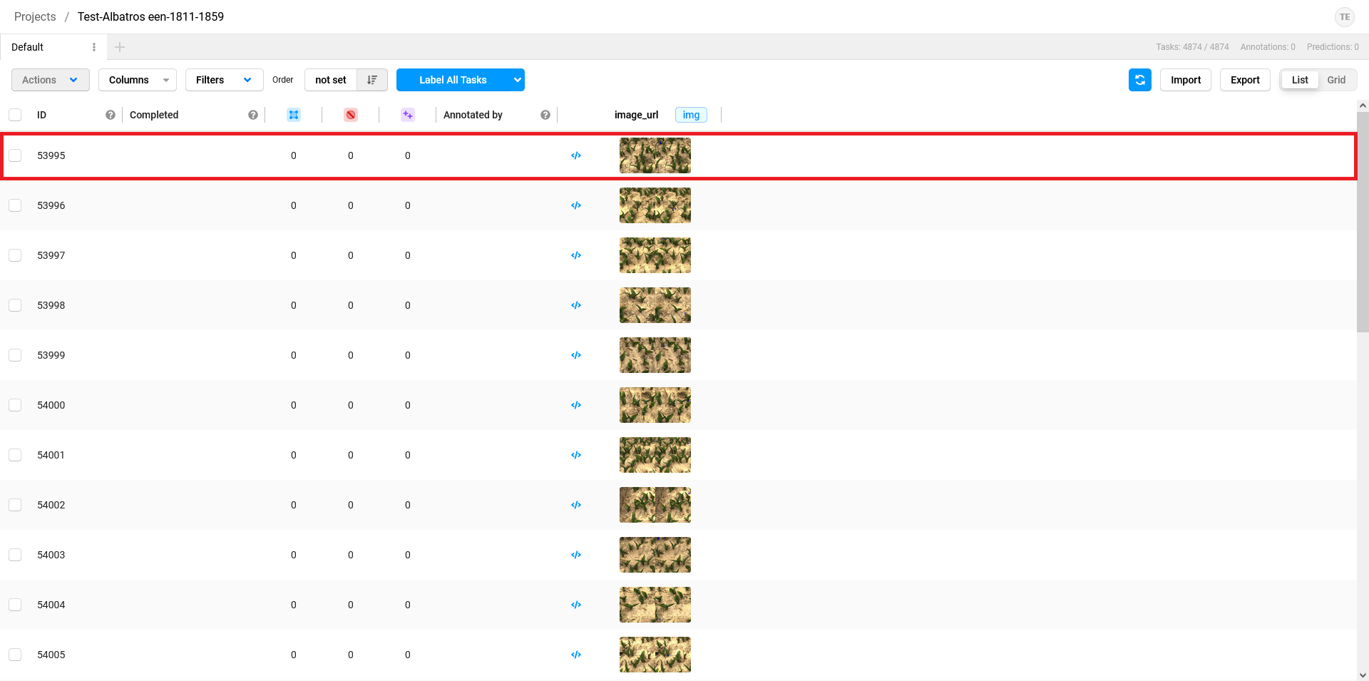 Below is series of screenshots that show a step for step explanaition on how to annotate sick tulips from you camera. images using Label Studio.