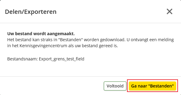 - U krijgt nu een laadscherm te zien. Druk op 'Ga naar Bestanden' als de export voltooit is en download het bestand met de grenzen op dezelfde manier.