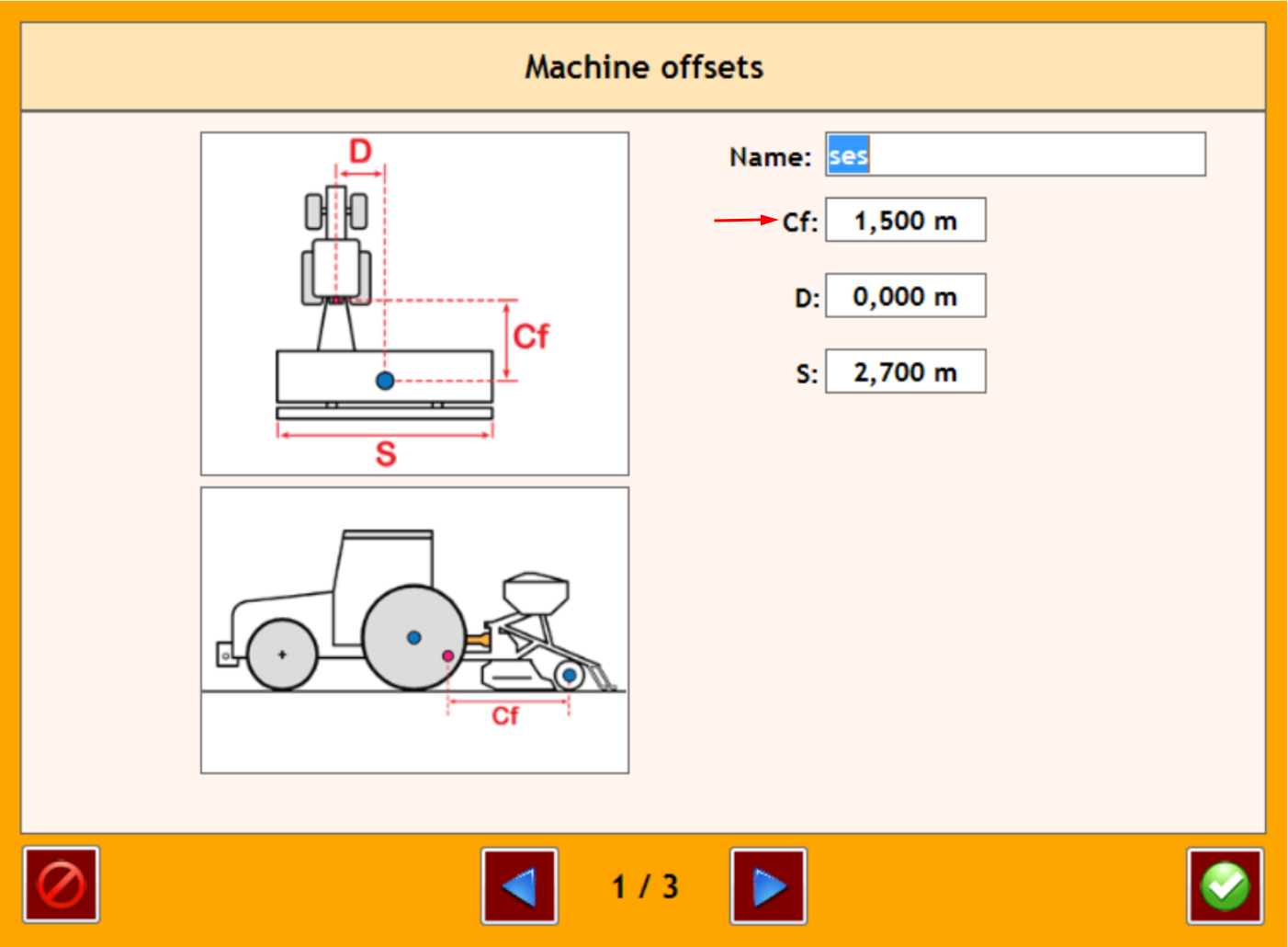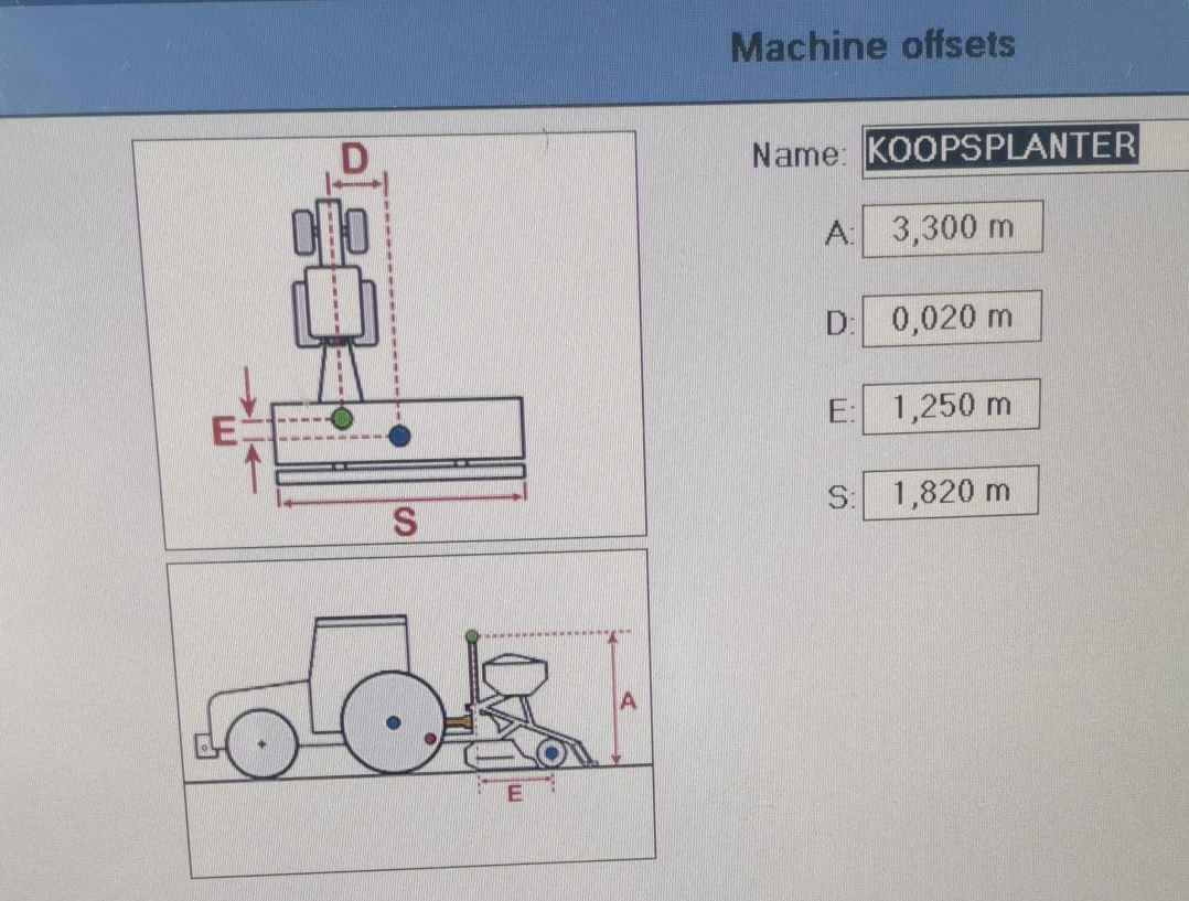 In een systeem met een enkele antenne op de tractor (wordt niet aangeraden), wordt deze afstelling Cf genoemd, zoals je in de illustratie hieronder kan zien.
