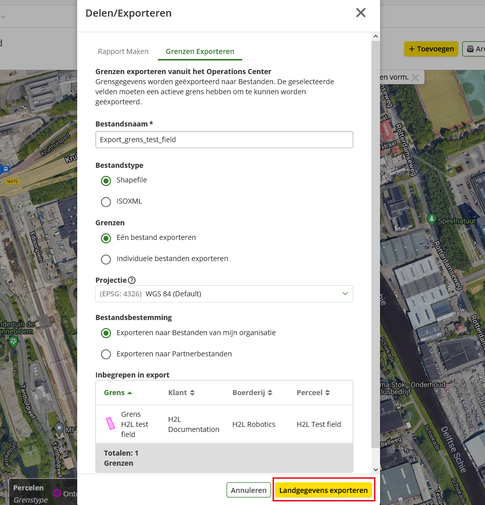 - You will now see a loading screen. Press 'Ga naar Bestanden' when the export is complete and download the boundary file in the same way